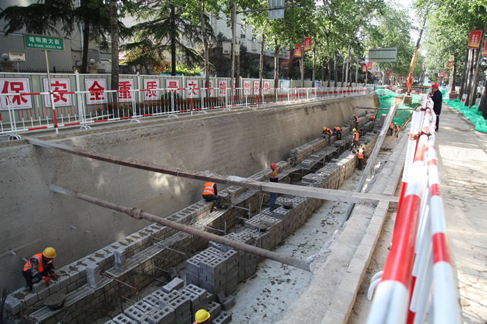 維明街做為石家莊南北向貫穿中心城區(qū)的主要通道,緊鄰省委機關(guān),沿線單位、居民區(qū)眾多,交通壓力突出,社會影響廣泛。按照全市排水規(guī)劃,2017年4月至10月對維明街進行道路排水改造。該工程北起新華路南至裕華路,全長1170米,紅線寬50米。實行雨污分流,新建4米×2.4米雨水方溝一道,0.5米污水管道一道。
